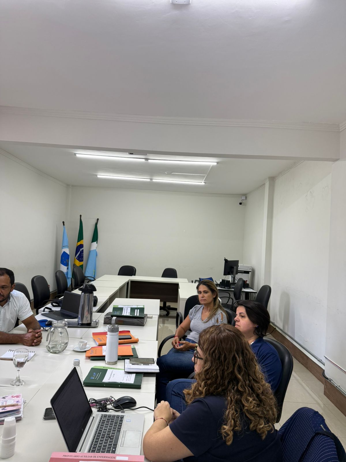 Durante a agenda institucional, as representantes do Cofen foram recebidas pelas enfermeiras fiscais Dra. Renata Moraes e Dra. Liniani Modolo, na companhia do presidente do Conselho, Dr. Leandro Afonso Dias. Na ocasião, acompanharam de forma detalhada os processos e as rotinas do setor de fiscalização do Coren-MS, realizando uma análise técnica das práticas adotadas e da conformidade das atividades com as diretrizes estabelecidas pelo Conselho Federal de Enfermagem (Cofen).