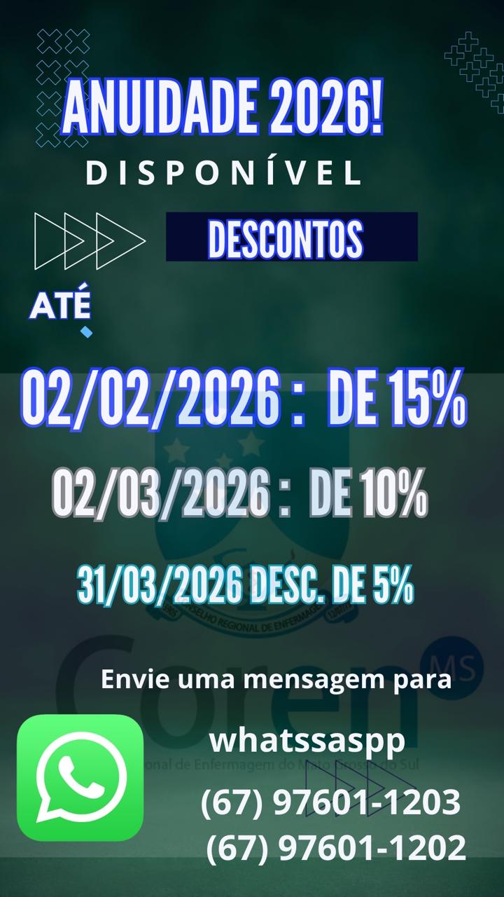 Coren-MS INFORMA: Anuidade 2026 já disponível