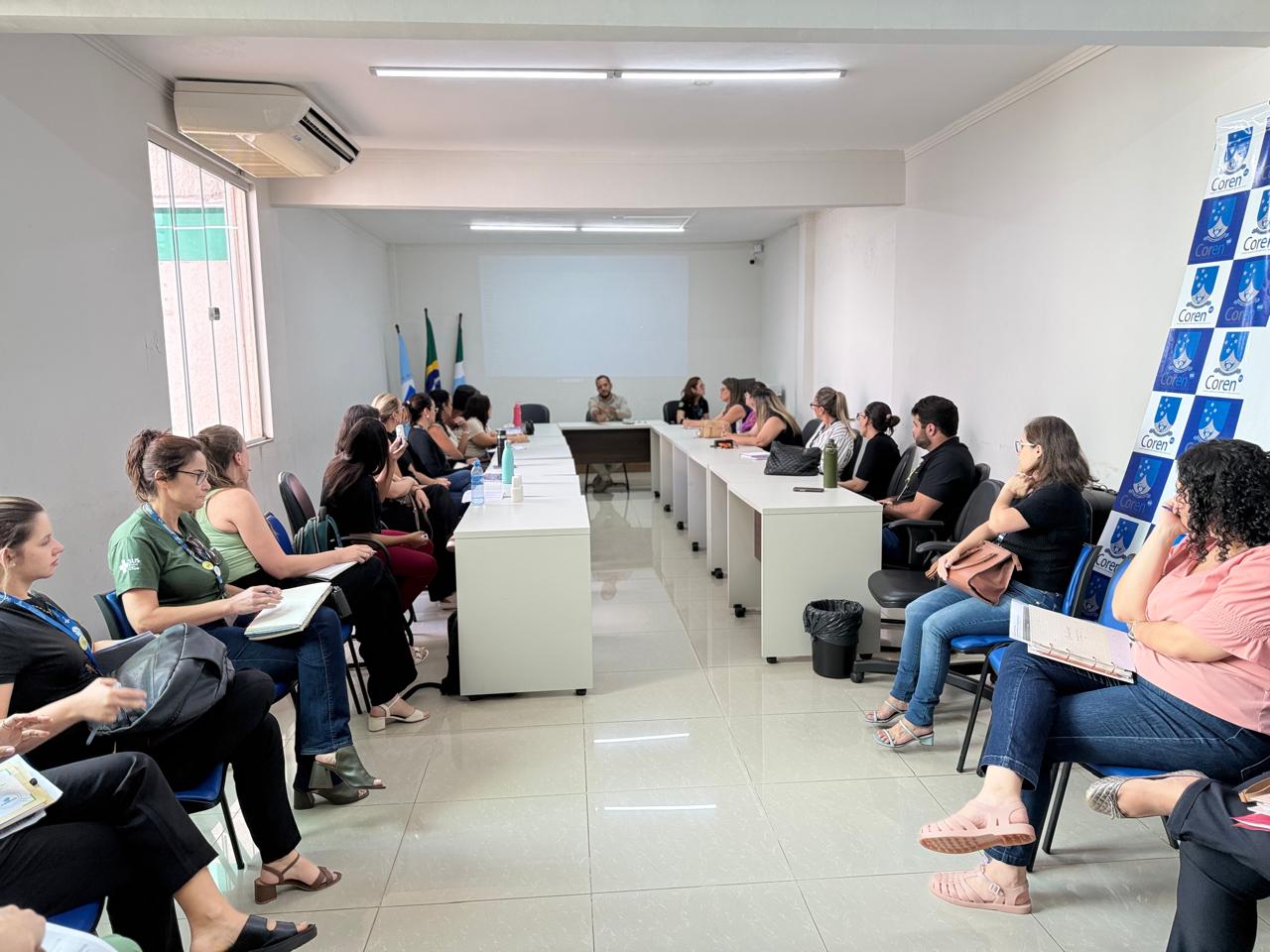 A reunião foi conduzida pelo presidente do Coren-MS, Dr. Leandro Afonso Dias, pela secretária Dra. Virna Hildebrand e pela enfermeira fiscal Elayne Cristina, que destacaram a importância do alinhamento institucional e do fortalecimento das prerrogativas do Enfermeiro Responsável Técnico.